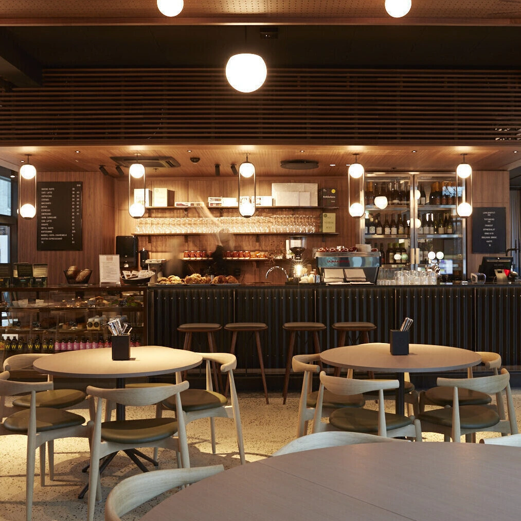 Start dagen med en smakfull frokost og nytraktet kaffe, eller kom innom for en deilig lunsj. Vi har alltid noe søtt til kaffen – perfekt for en liten pause i hverdagen. Lokalene egner seg også godt for uformelle møter, og er man sent ute med bestilling av møtemat, kan man bestille ekspress-levering herfra.