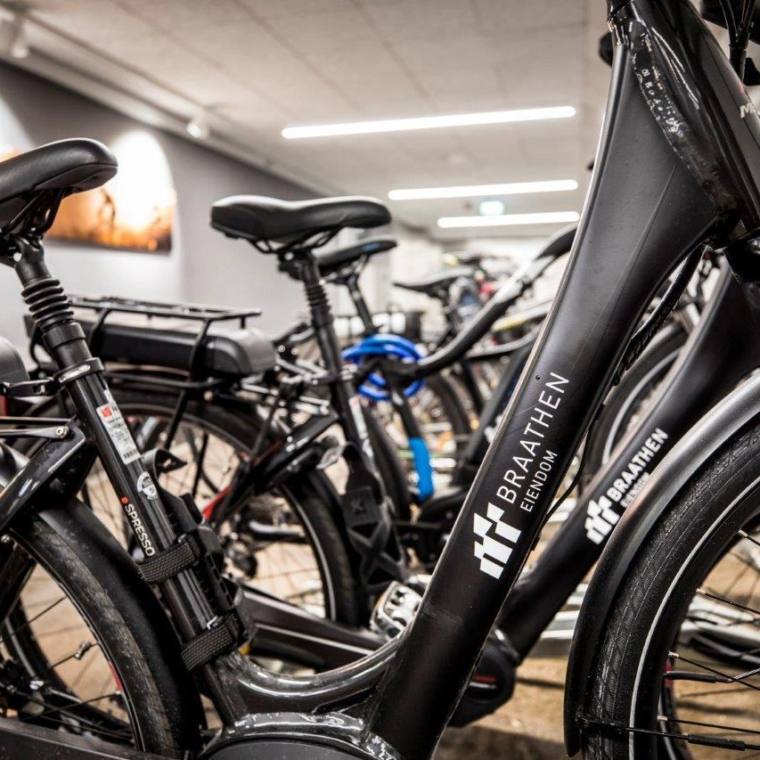 I tilknytning til trimrom og garderobe, finner du el-sykler tilgjengelig for utlån i arbeidstiden.