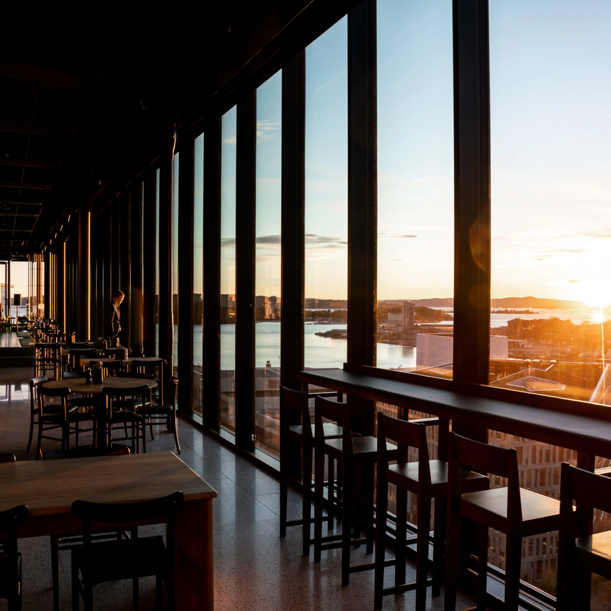 Rommene er utstyrt med moderne fasiliteter og komfortable stoler. Flere har utsikt mot Oslos sentrale forretningsområder, andre ligger mer skjermet i byggets kjerne – et valg mellom puls og ro, avhengig av behov.