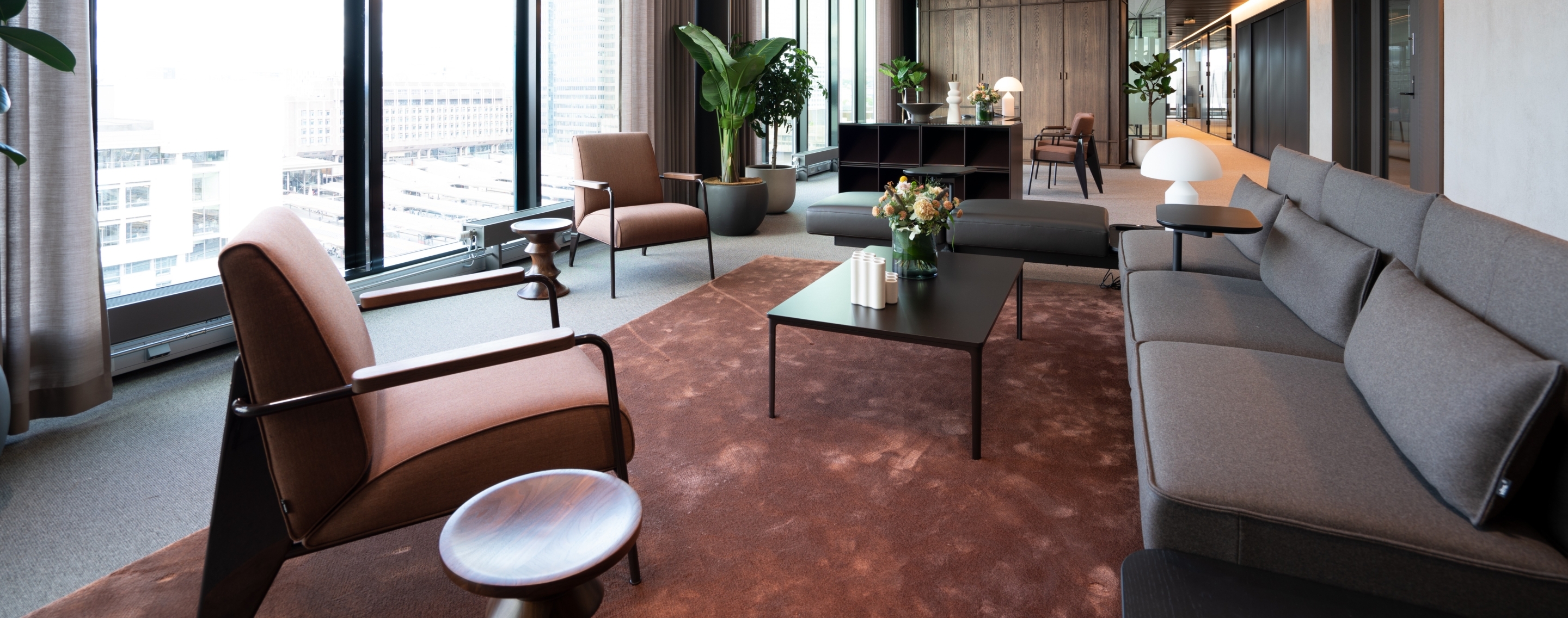 Representative lounger med mulighet for nettverksbygging eller et uformelt møte. Behagelige møbler der man kan ta en kaffe og en velfortjent pause.