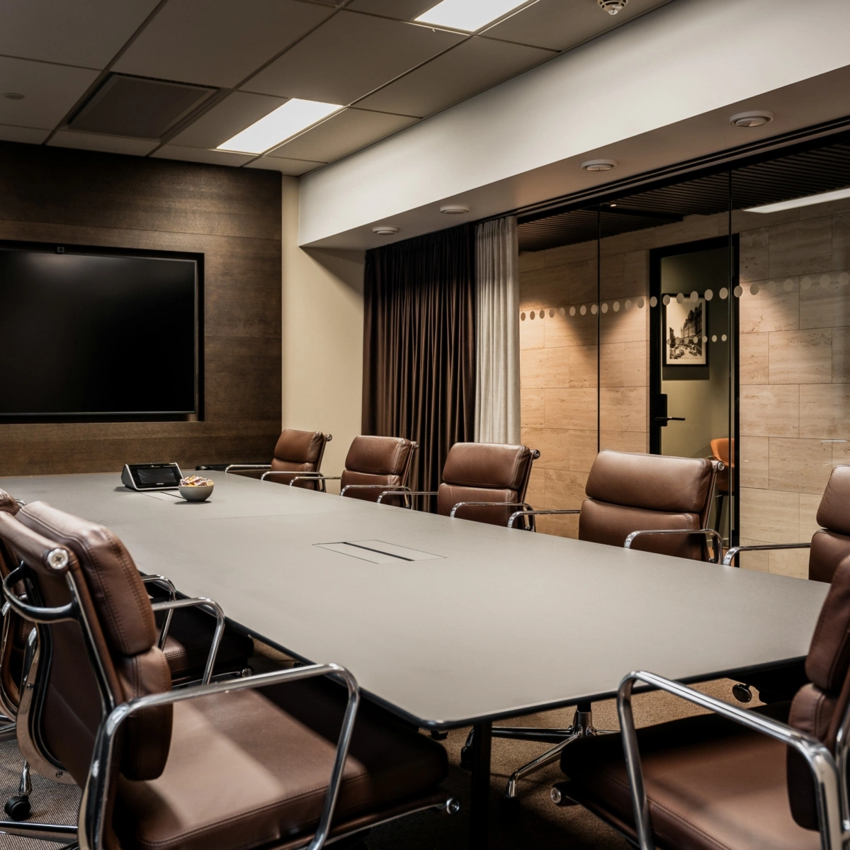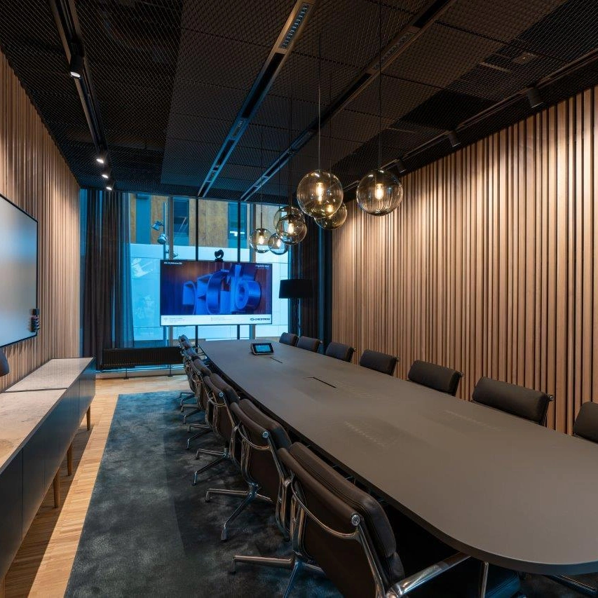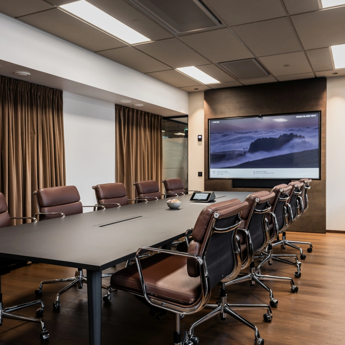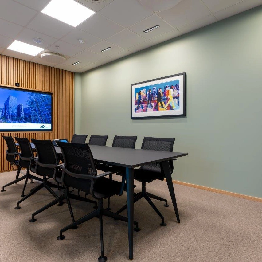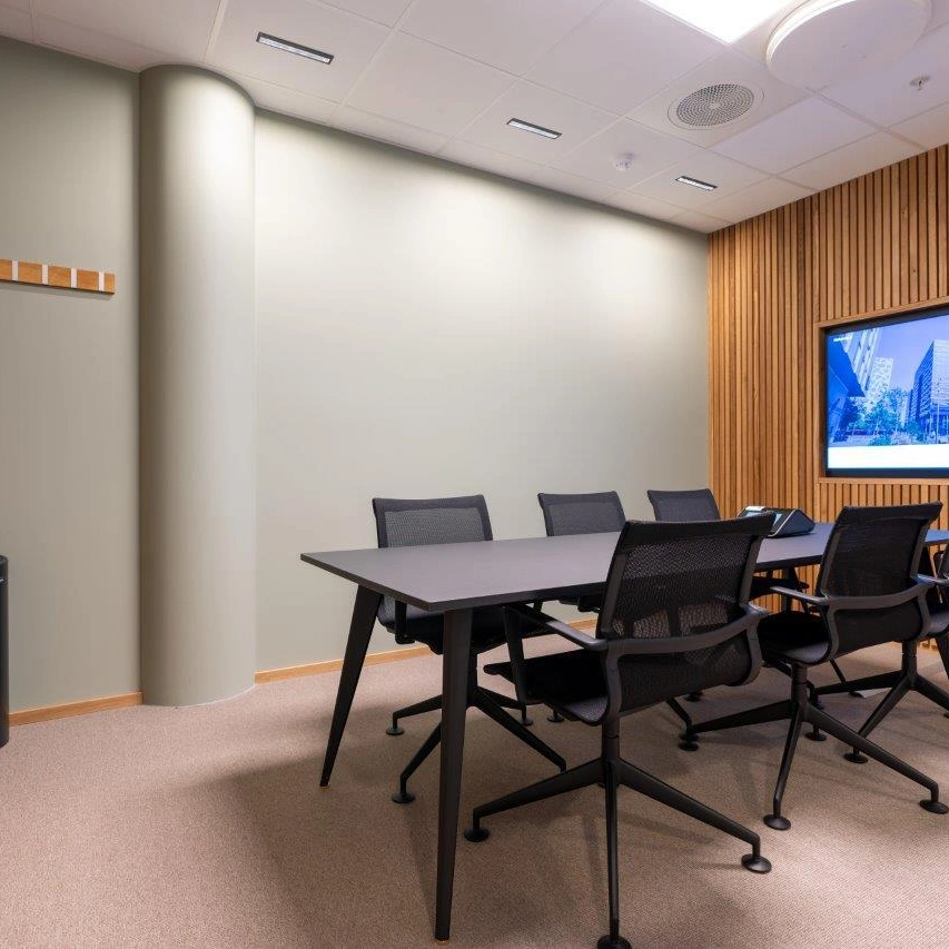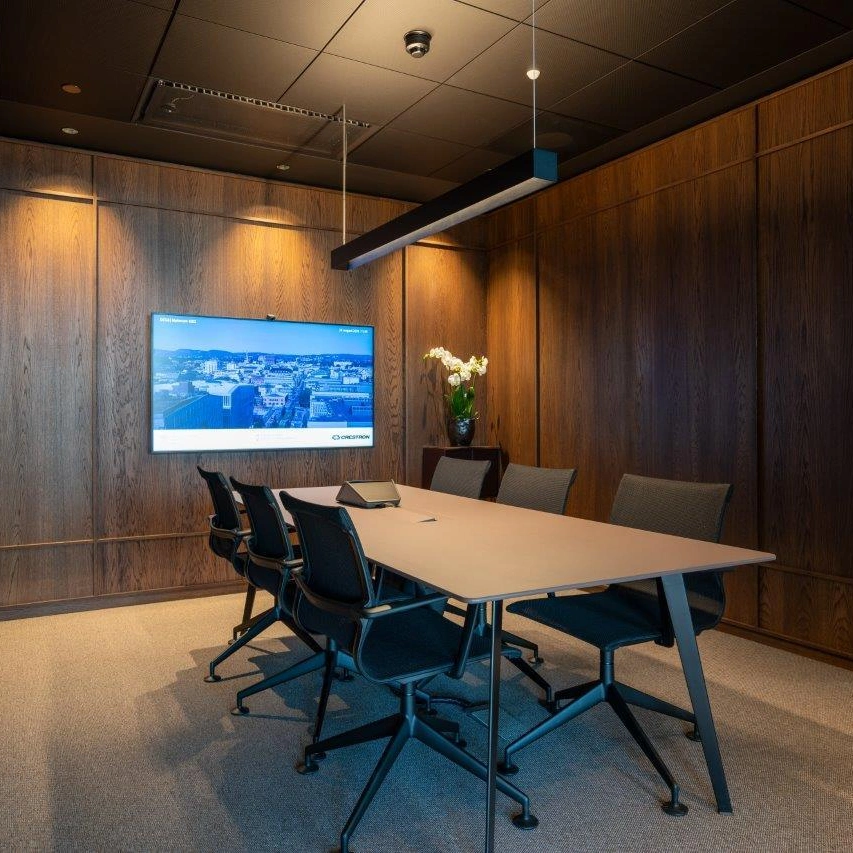 Representativt møterom med diskret beliggenhet i bygget. Rommet er utstyrt med videokonferanseutstyr. Kaffe, te og Pure Water er tilgjengelig.