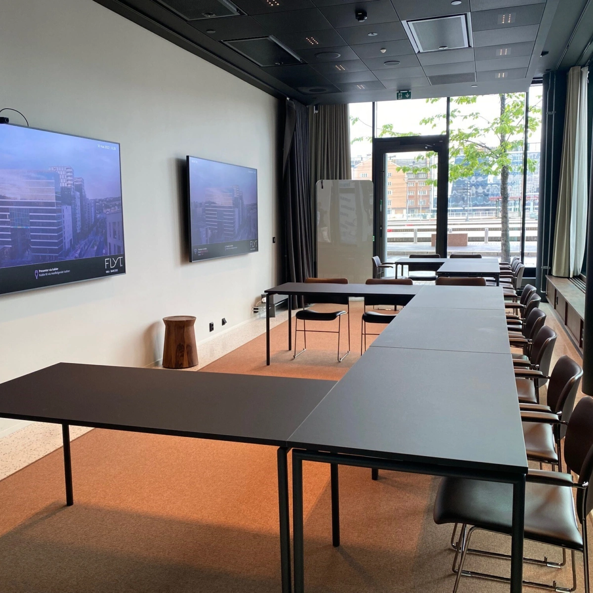 Stort og trivelig møterom med utsyn til vest mot Konserthuset i 3. etg. Rommet er utstyrt med fullt videokonferanseutstyr. Kaffe, te og Pure Water er tilgjengelig.