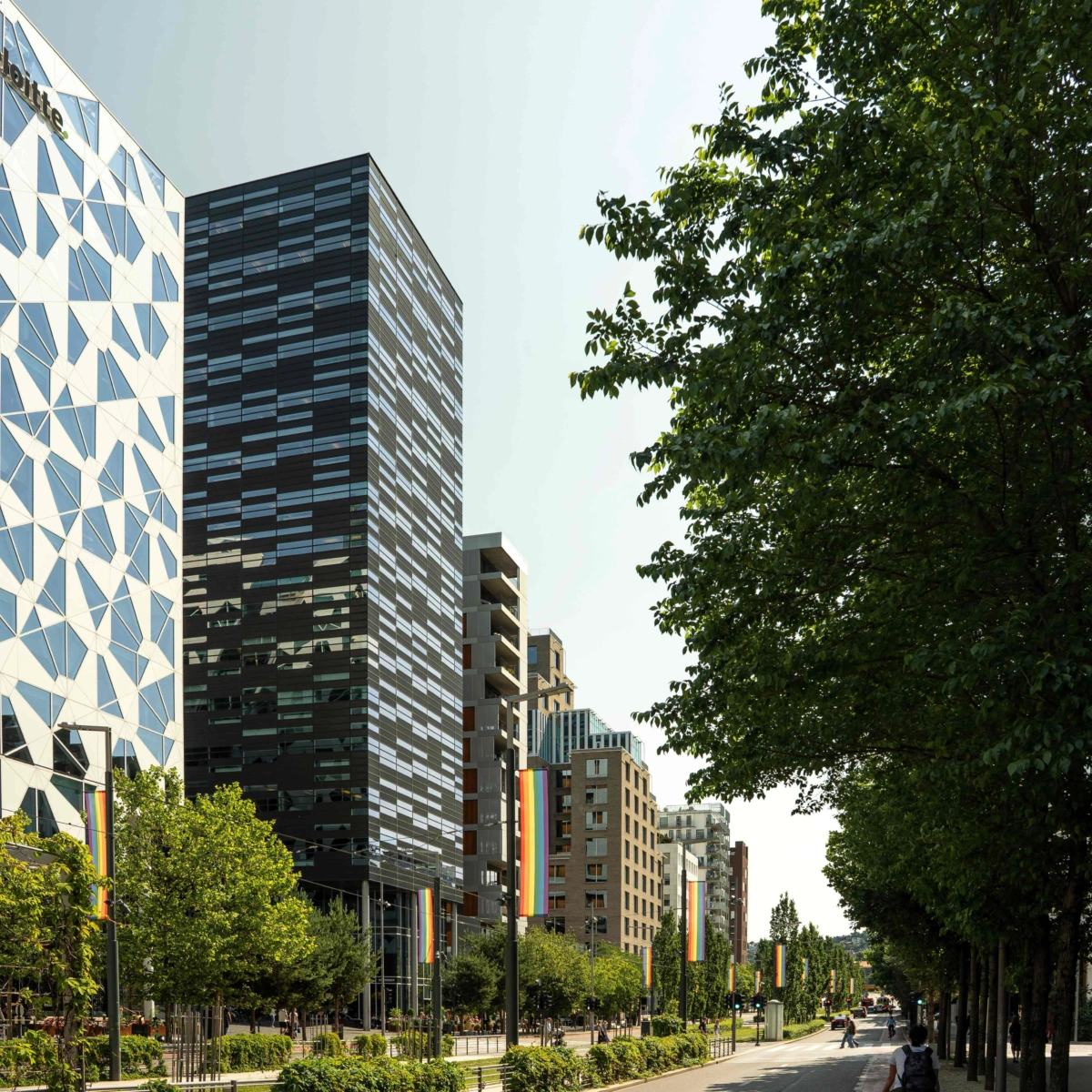 Inngangsporten til Barcode-rekken. Umiddelbar nærhet til Oslo S.