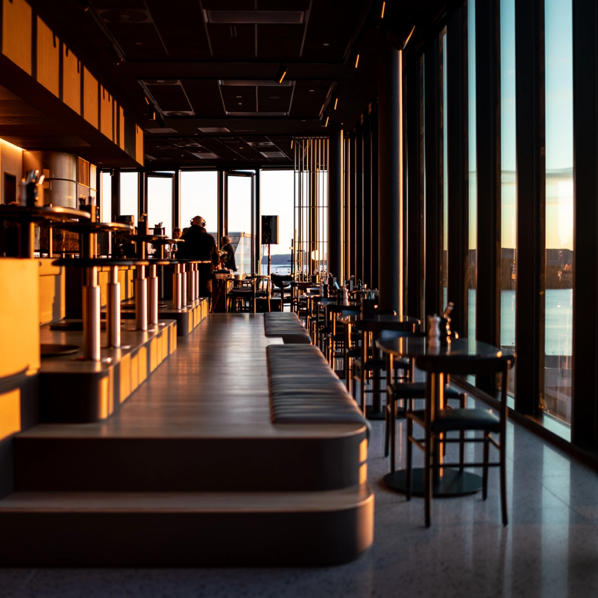 Ønsker dere en opplevelse utenom det vanlige, er Skybaren i DEG8 et naturlig valg. Her samles gjestene til middag og feiring med en spektakulær utsikt over Oslo – en opplevelse som gjør kvelden minneverdig.